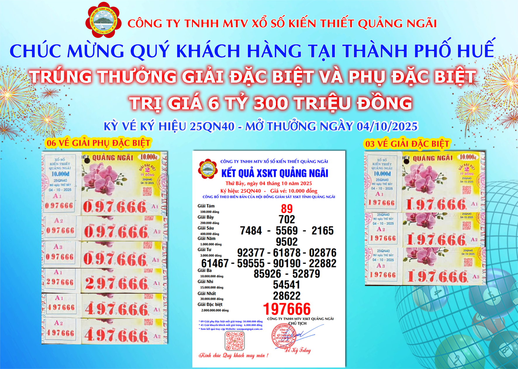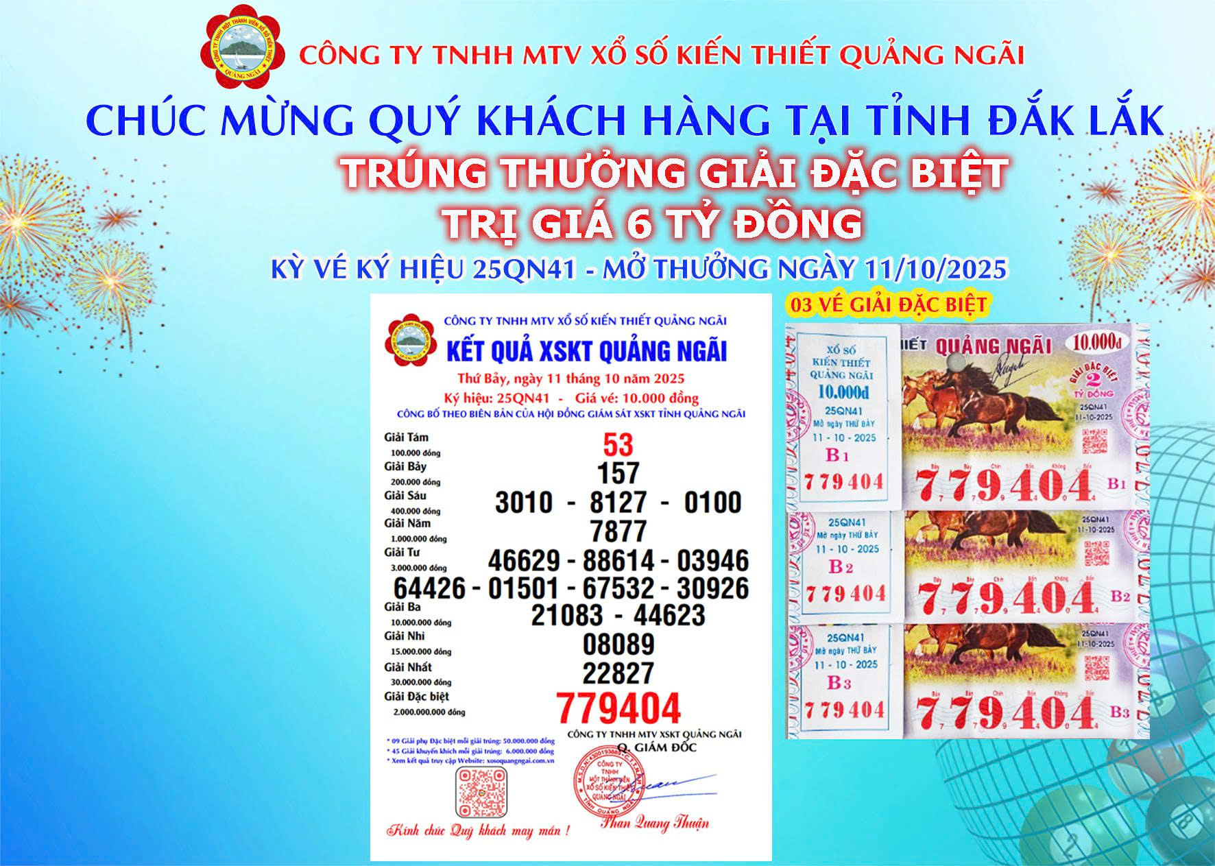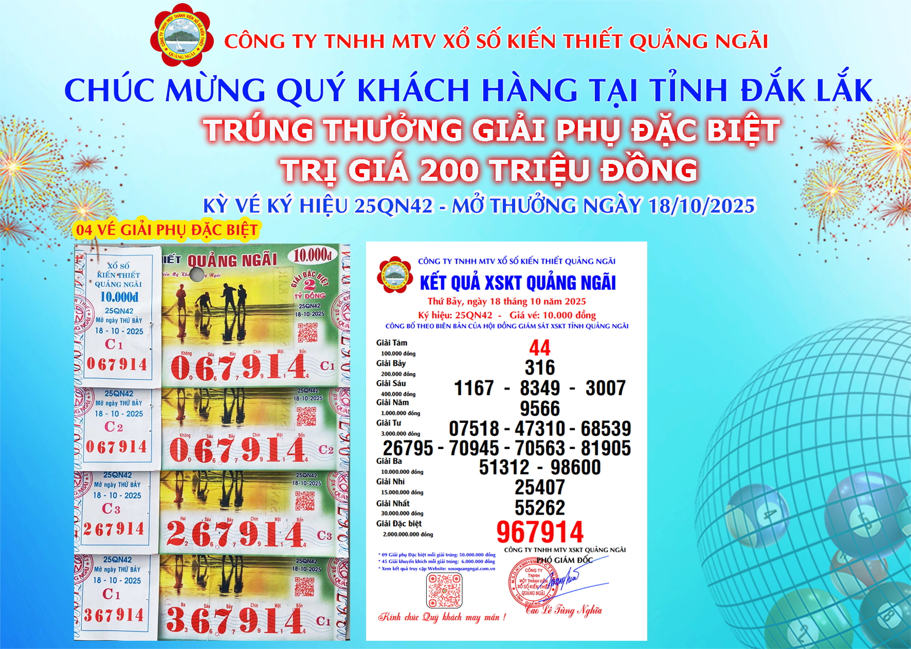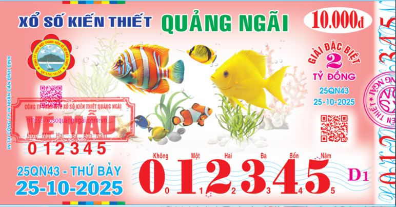 Mở thưởng Thứ Bảy ngày 25-10-2025Ký hiệu: 25QN43