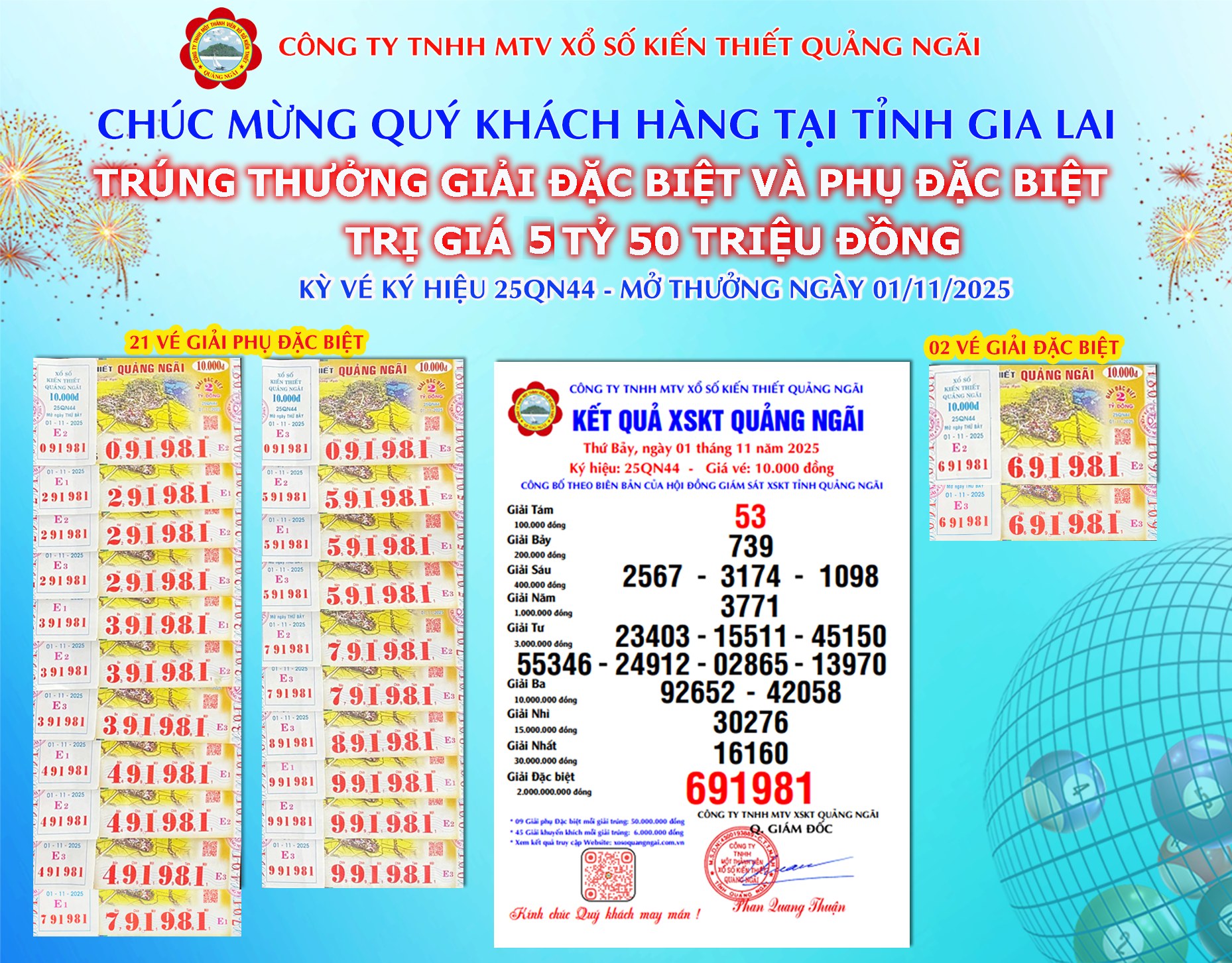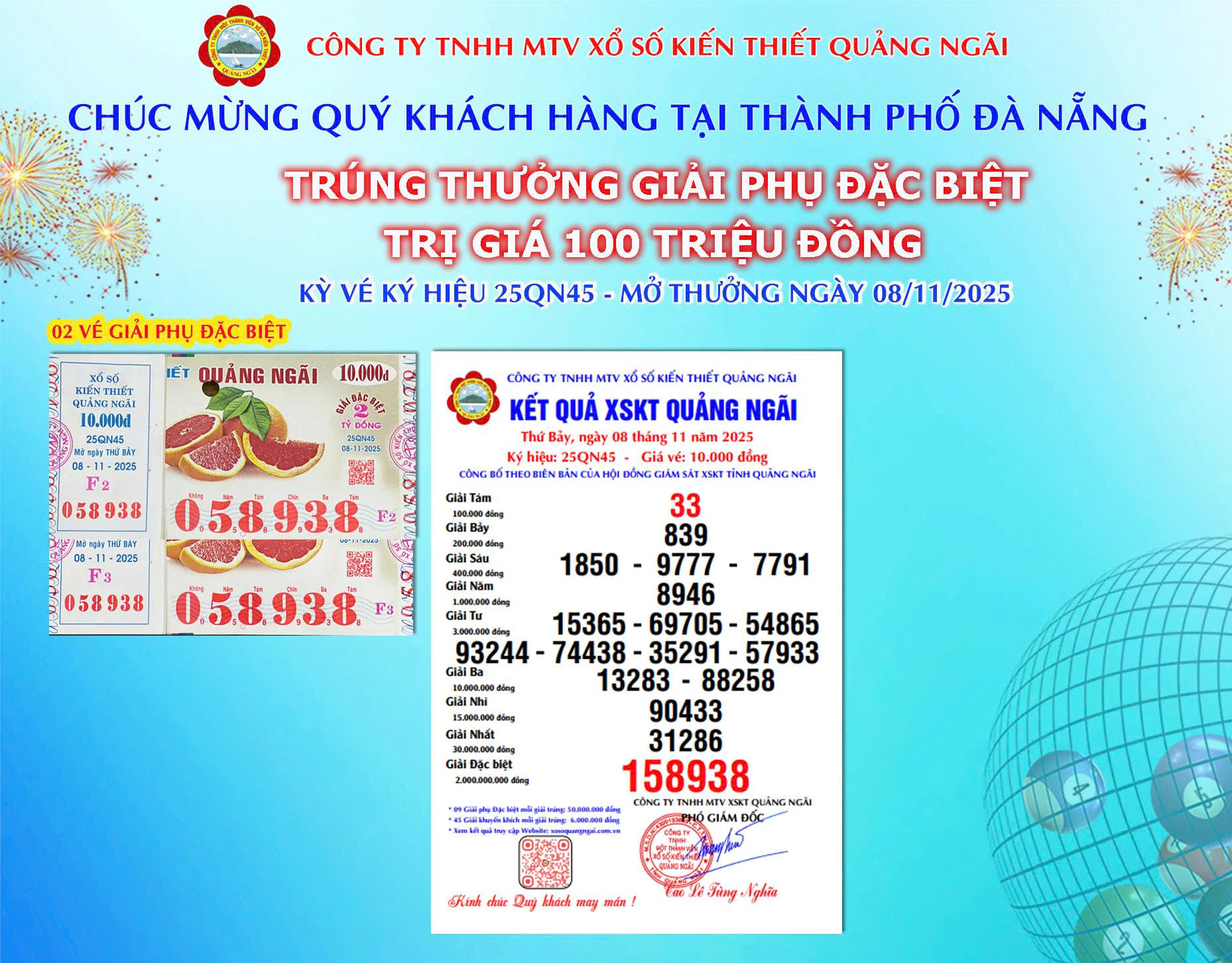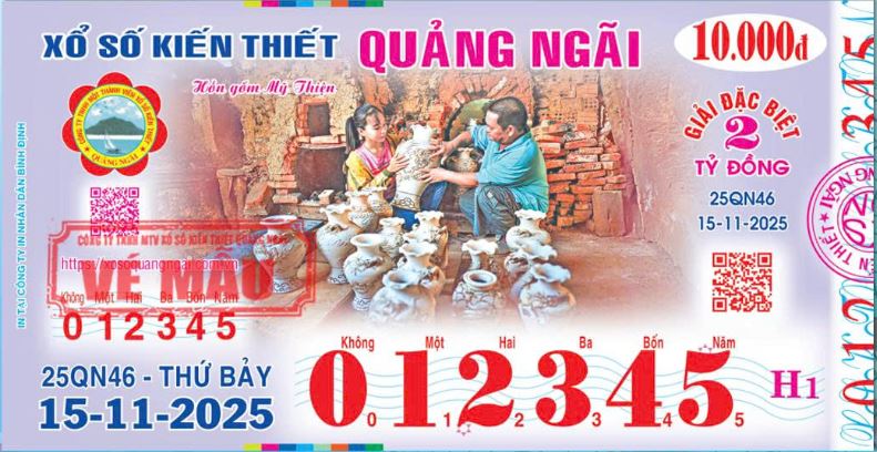 Mở thưởng Thứ Bảy ngày 15-11-2025Ký hiệu: 25QN46