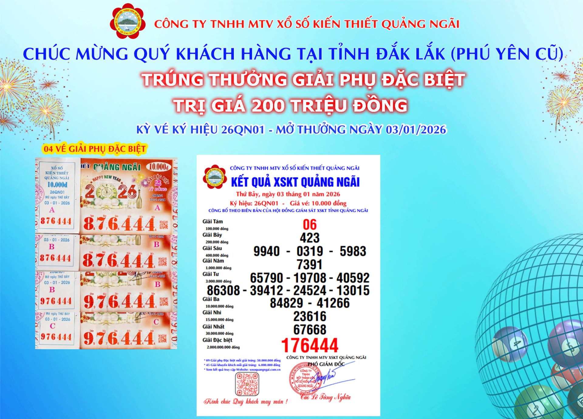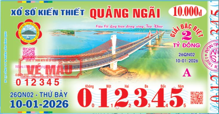 Mở thưởng Thứ Bảy ngày 10-01-2026Ký hiệu: 26QN02