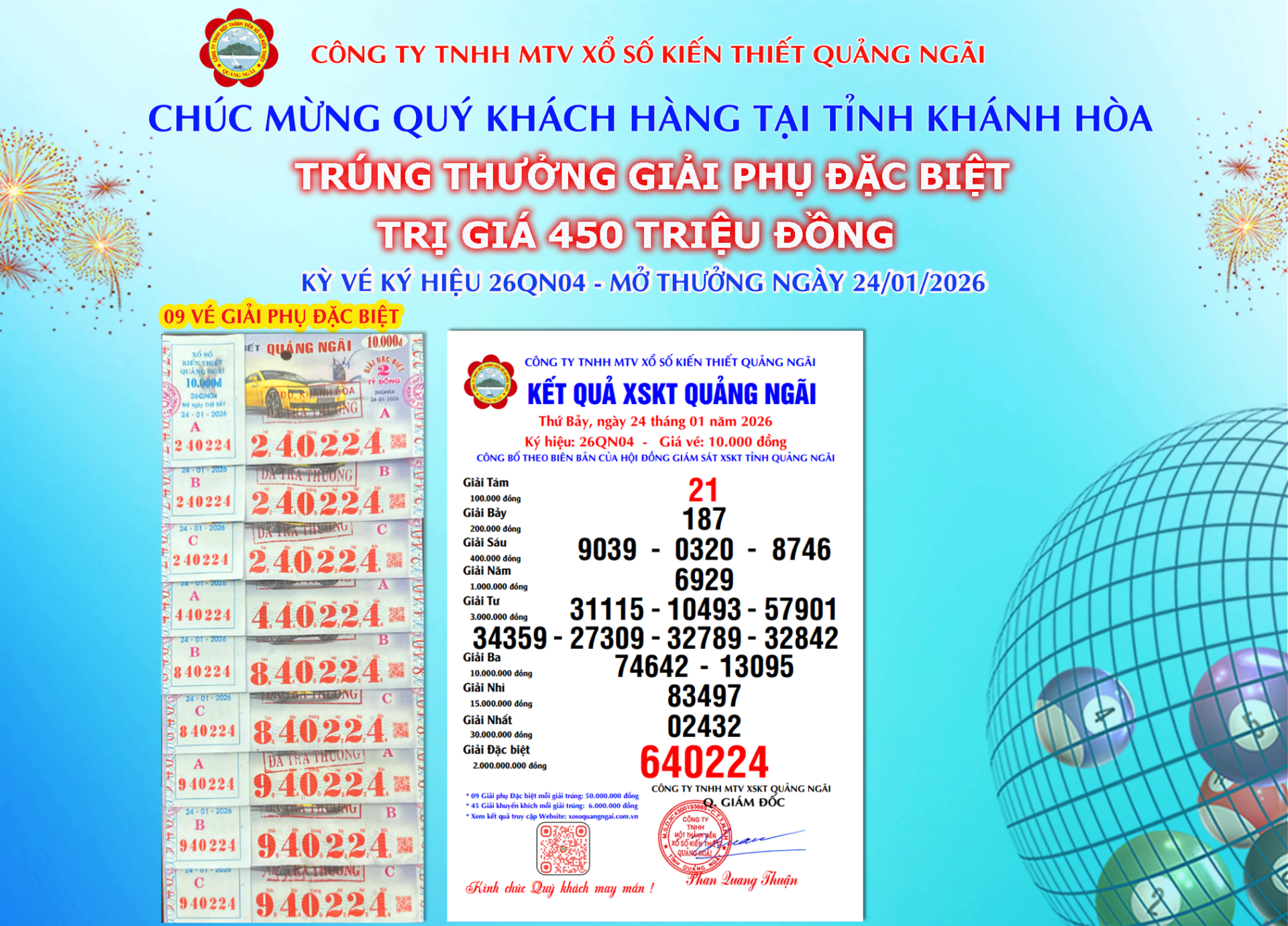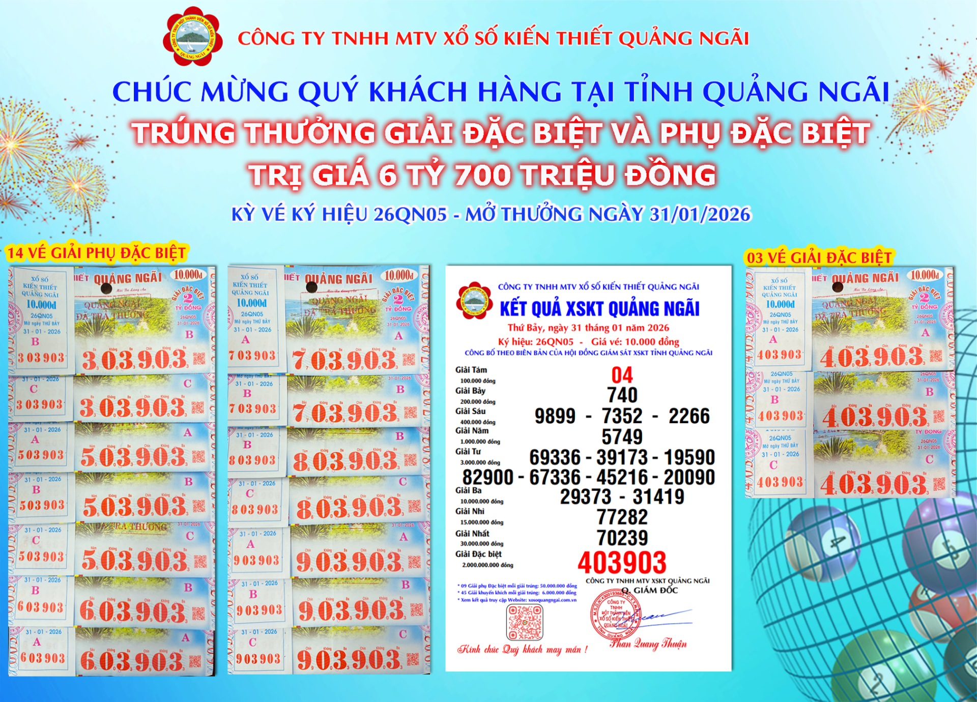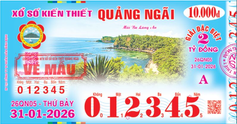 Mở thưởng Thứ Bảy ngày 31-01-2026Ký hiệu: 26QN05