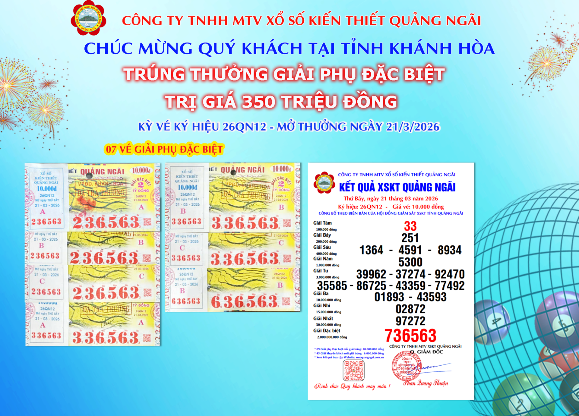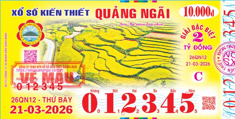 Mở thưởng Thứ Bảy ngày 21-03-2026Ký hiệu: 26QN12