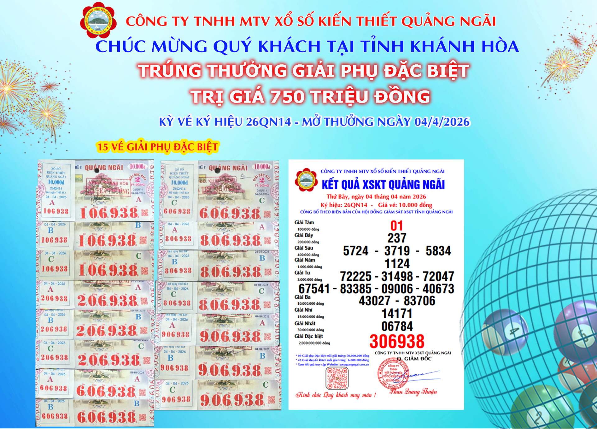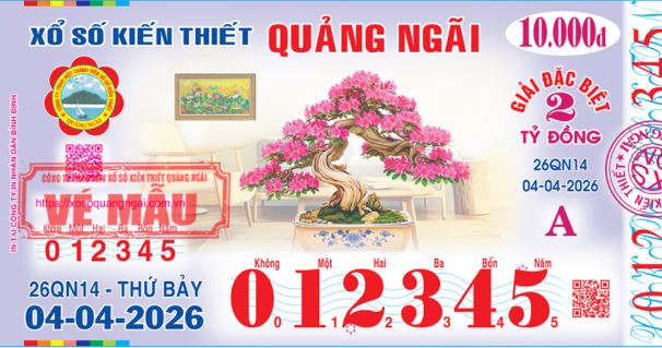 Mở thưởng Thứ Bảy ngày 04-04-2026Ký hiệu: 26QN14