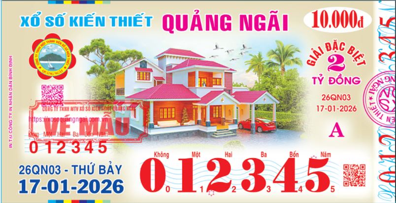 Mở thưởng Thứ Bảy ngày 17-01-2026Ký hiệu: 26QN03