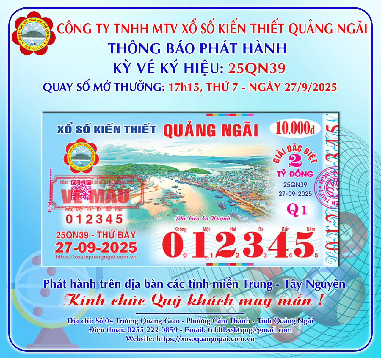 Thông báo phát hành Bộ vé Ký hiệu 25QN39 – Mở thưởng Thứ 7, ngày 27/9/2025 26/09/2025 / Thông báo phát hành Chia sẻ