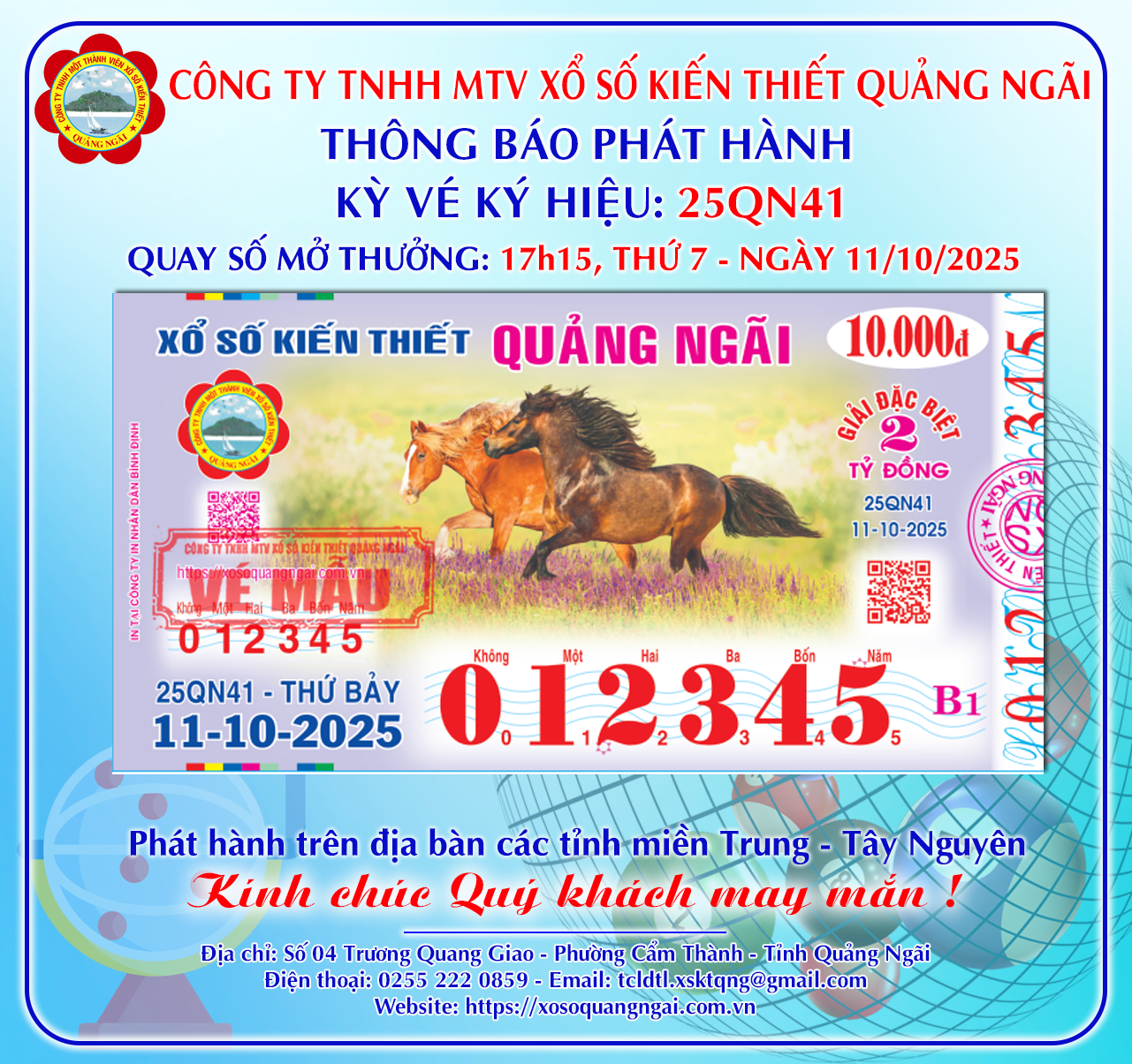 Thông báo phát hành Bộ vé Ký hiệu 25QN41 – Mở thưởng Thứ 7, ngày 11/10/2025 10/10/2025 / Thông báo phát hành Chia sẻ