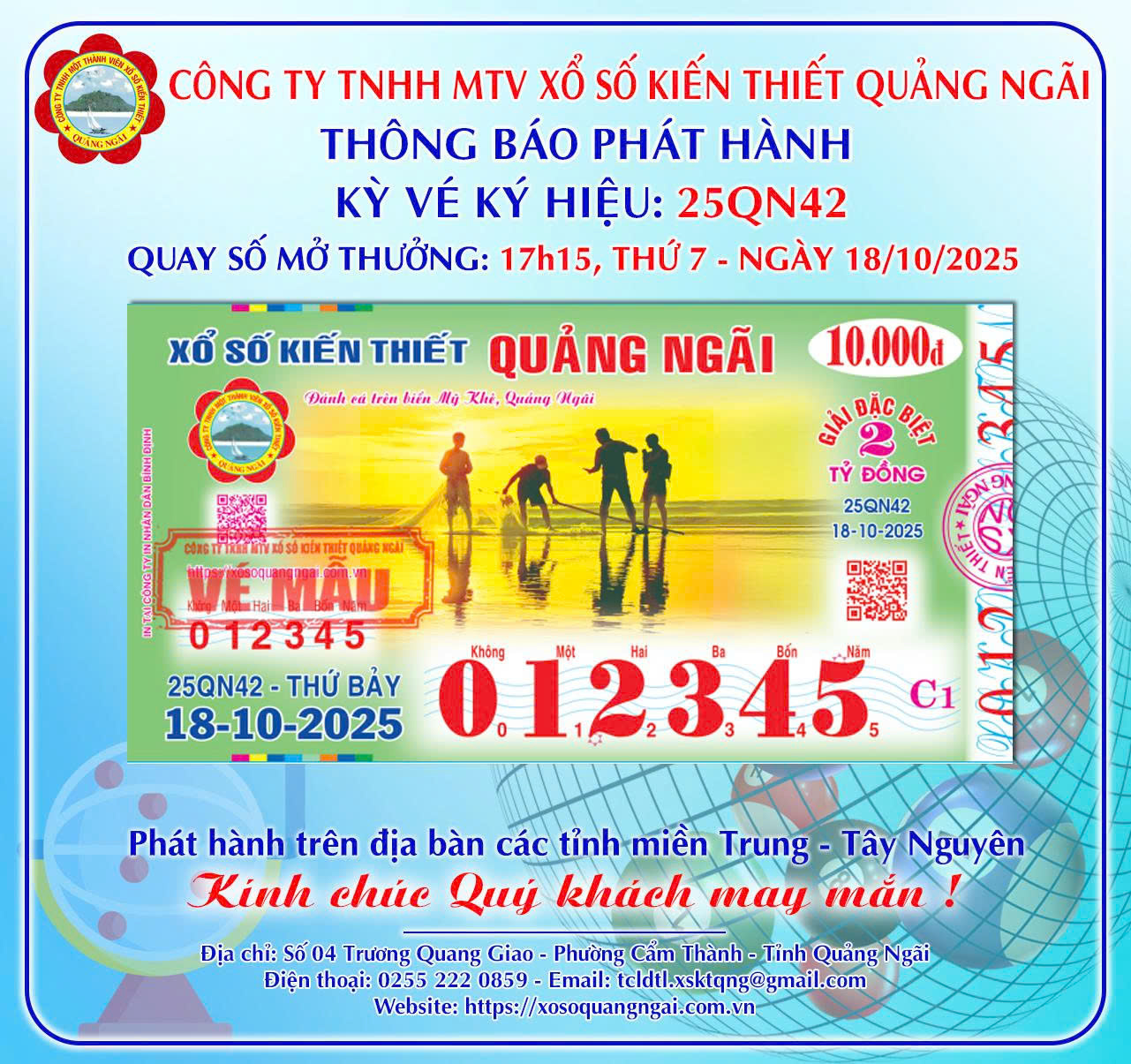 Thông báo phát hành Bộ vé Ký hiệu 25QN42 – Mở thưởng Thứ 7, ngày 18/10/2025 17/10/2025 / Thông báo phát hành Chia sẻ