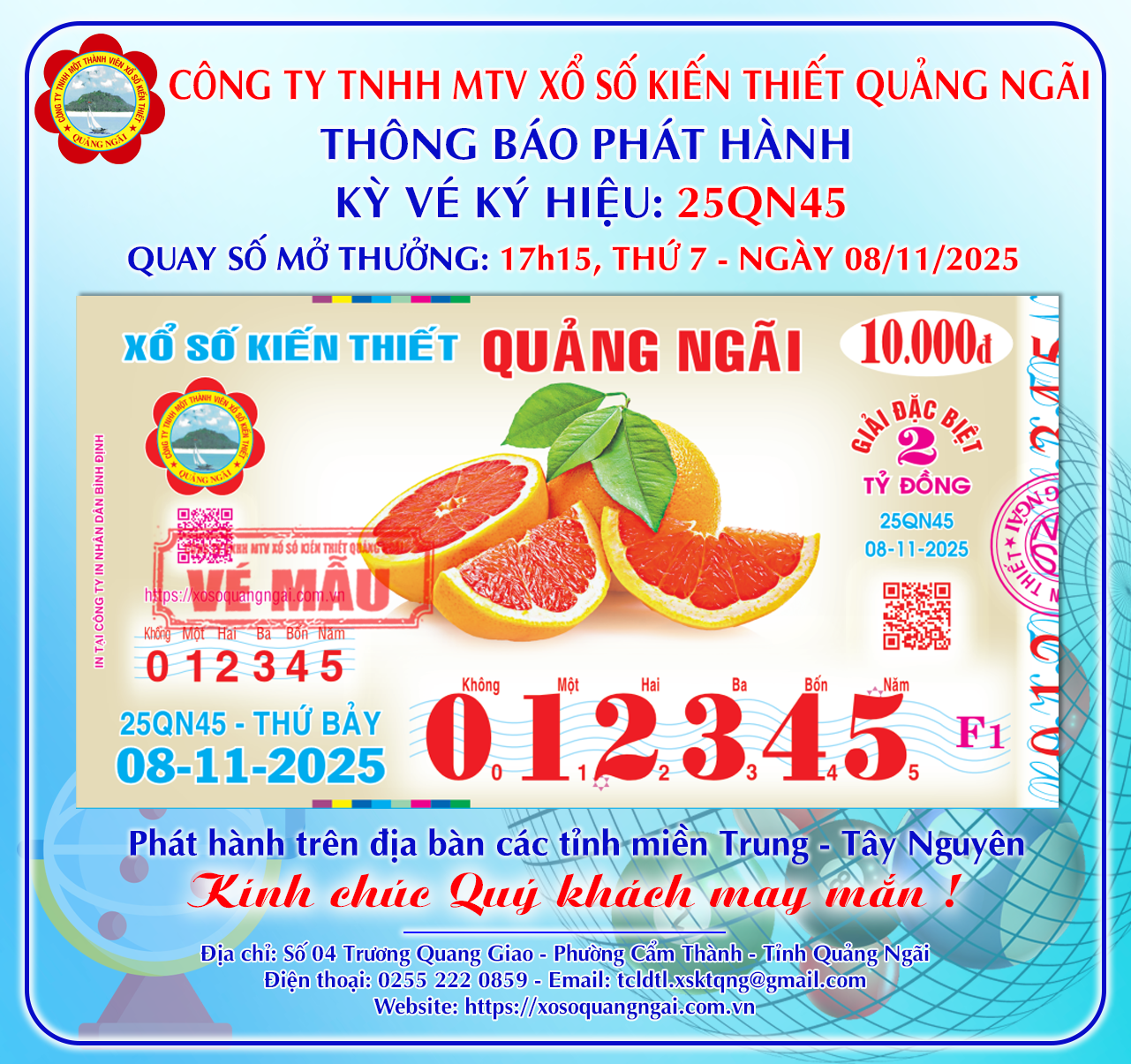 Thông báo phát hành Bộ vé Ký hiệu 25QN45 – Mở thưởng Thứ 7, ngày 08/11/2025 07/11/2025 / Thông báo phát hành Chia sẻ