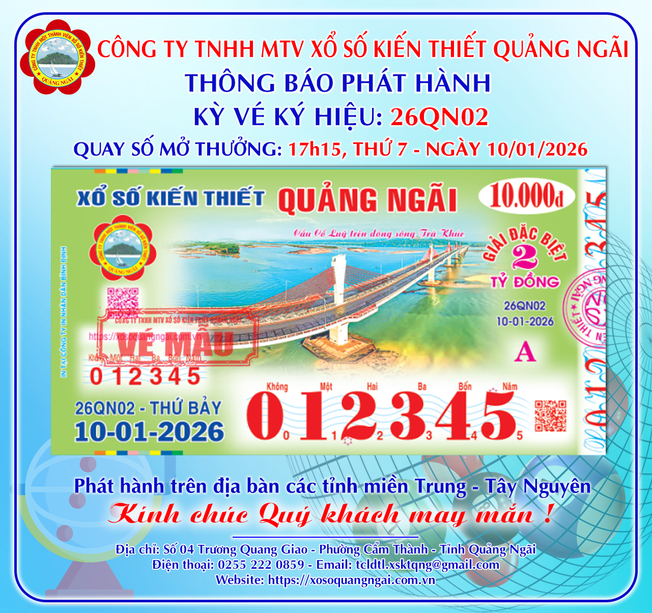 Thông báo phát hành Bộ vé Ký hiệu 26QN02 – Mở thưởng Thứ 7, ngày 10/01/2026 09/01/2026 / Thông báo phát hành Chia sẻ
