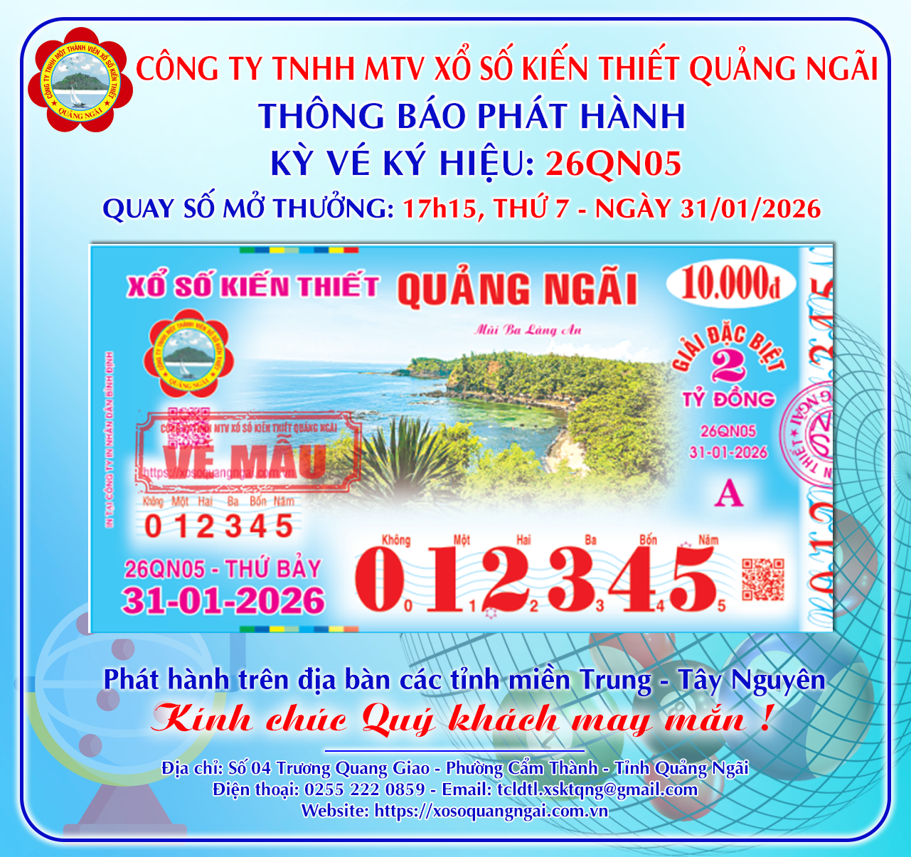Thông báo phát hành Bộ vé Ký hiệu 26QN05 – Mở thưởng Thứ 7, ngày 31/01/2026 30/01/2026 / Thông báo phát hành Chia sẻ